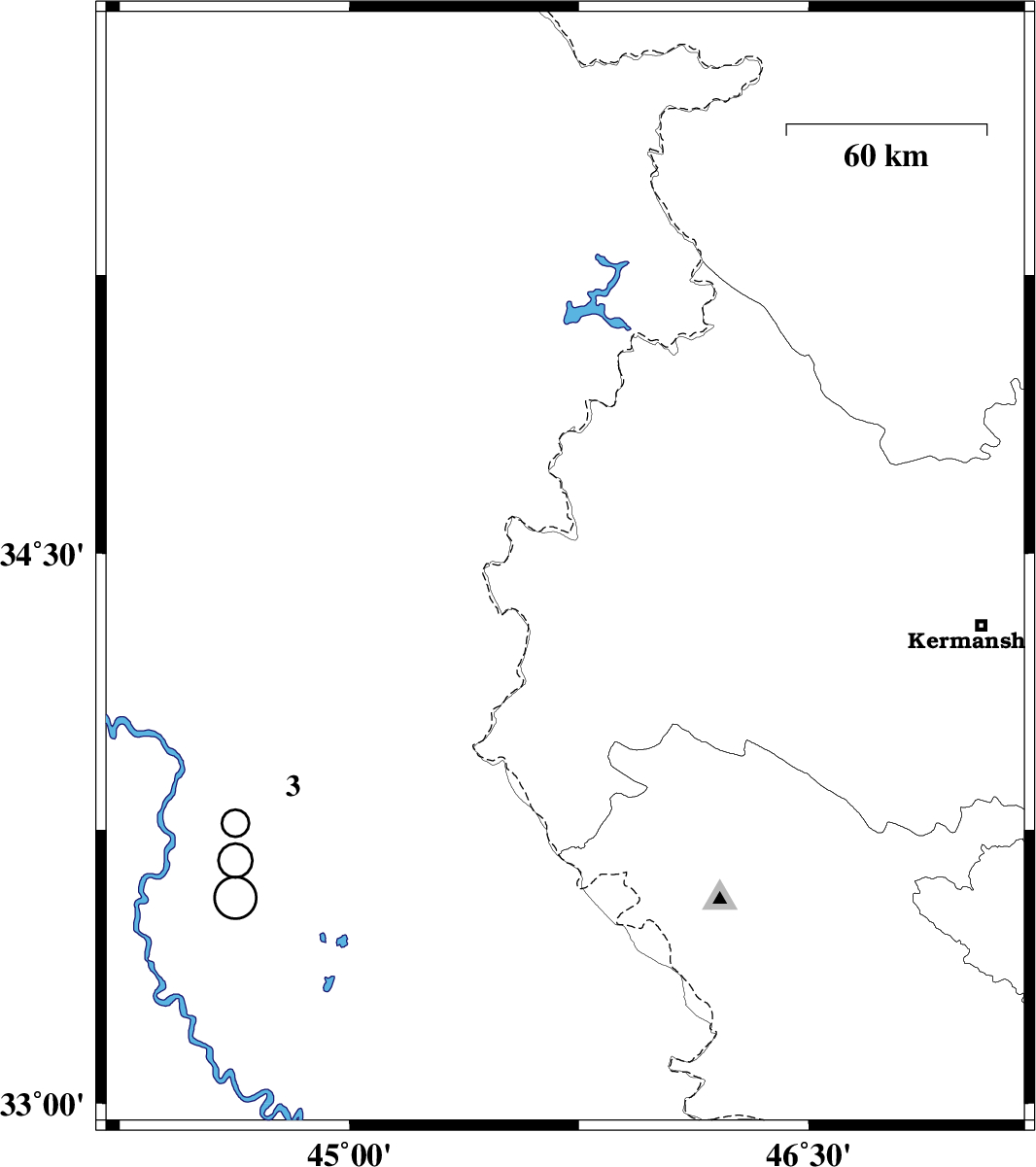 | 2018/07/01 | 18:04:40.9 | 22:34:40.9 | 34.649 | 46.195 | 14 | ML3.3 | Kermanshah Province, 31 km South-West of Javanrud |