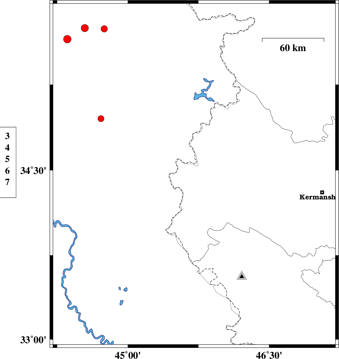 2018/07/05 | 17:16:51.8 | 21:46:51.8 | 34.363 | 45.312 | 14 | ML:3.7 | Iraq, 30 km South-West of Qasr-E-Shirin | ||