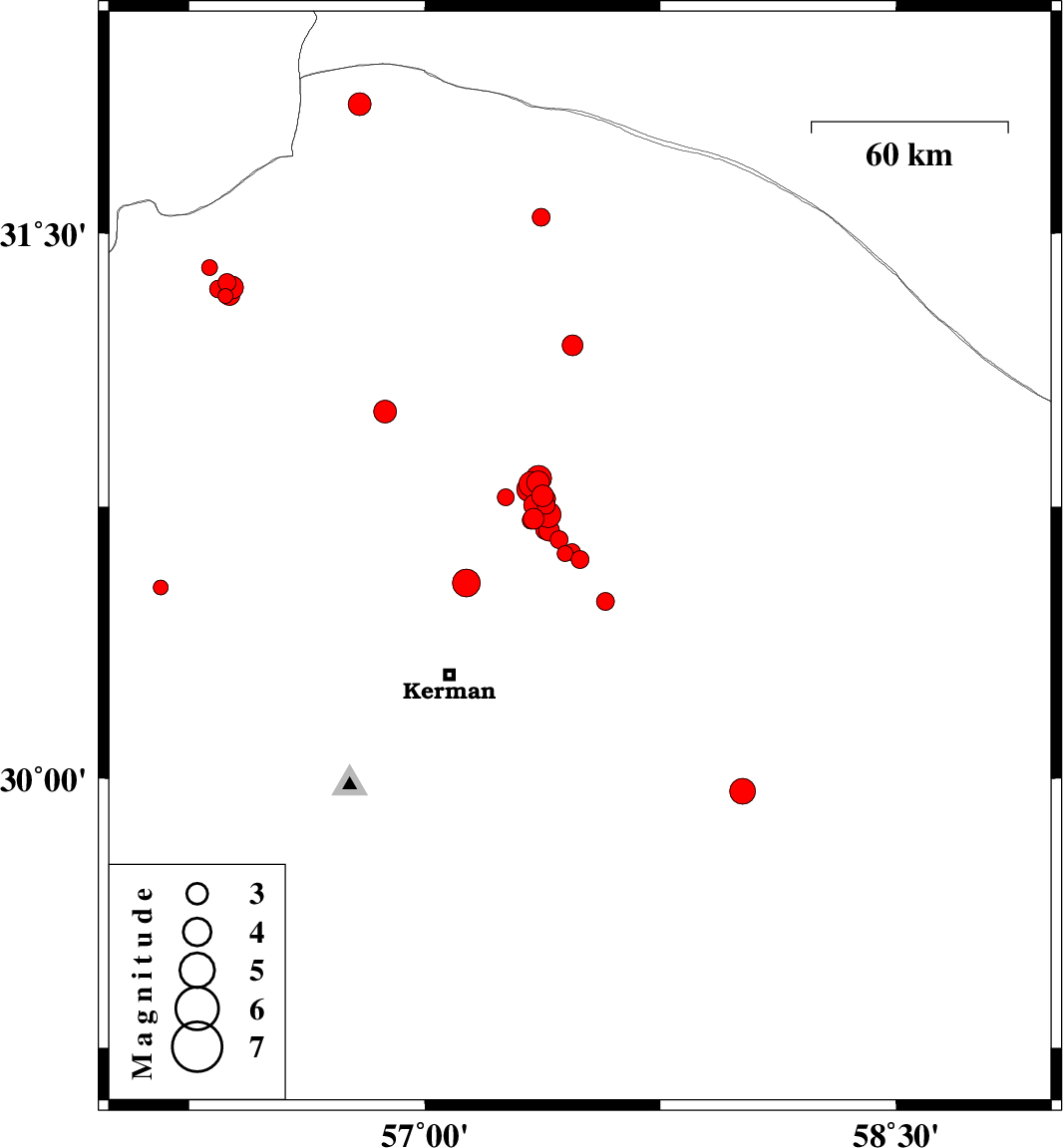 | 2018/06/28 | 19:52:40.4 | 00:22:40.4 | 30.685 | 57.395 | 14 | ML2.9 | Kerman Province, 54 km North-East of Kerman | ||