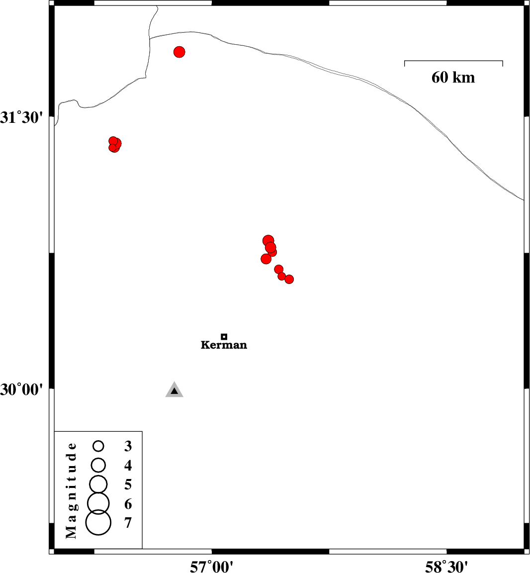 | 2018/07/11 | 05:20:07.0 | 09:50:07.0 | 30.605 | 57.494 | 14 | ML2.5 | Kerman Province, 53 km North-East of Kerman | ||