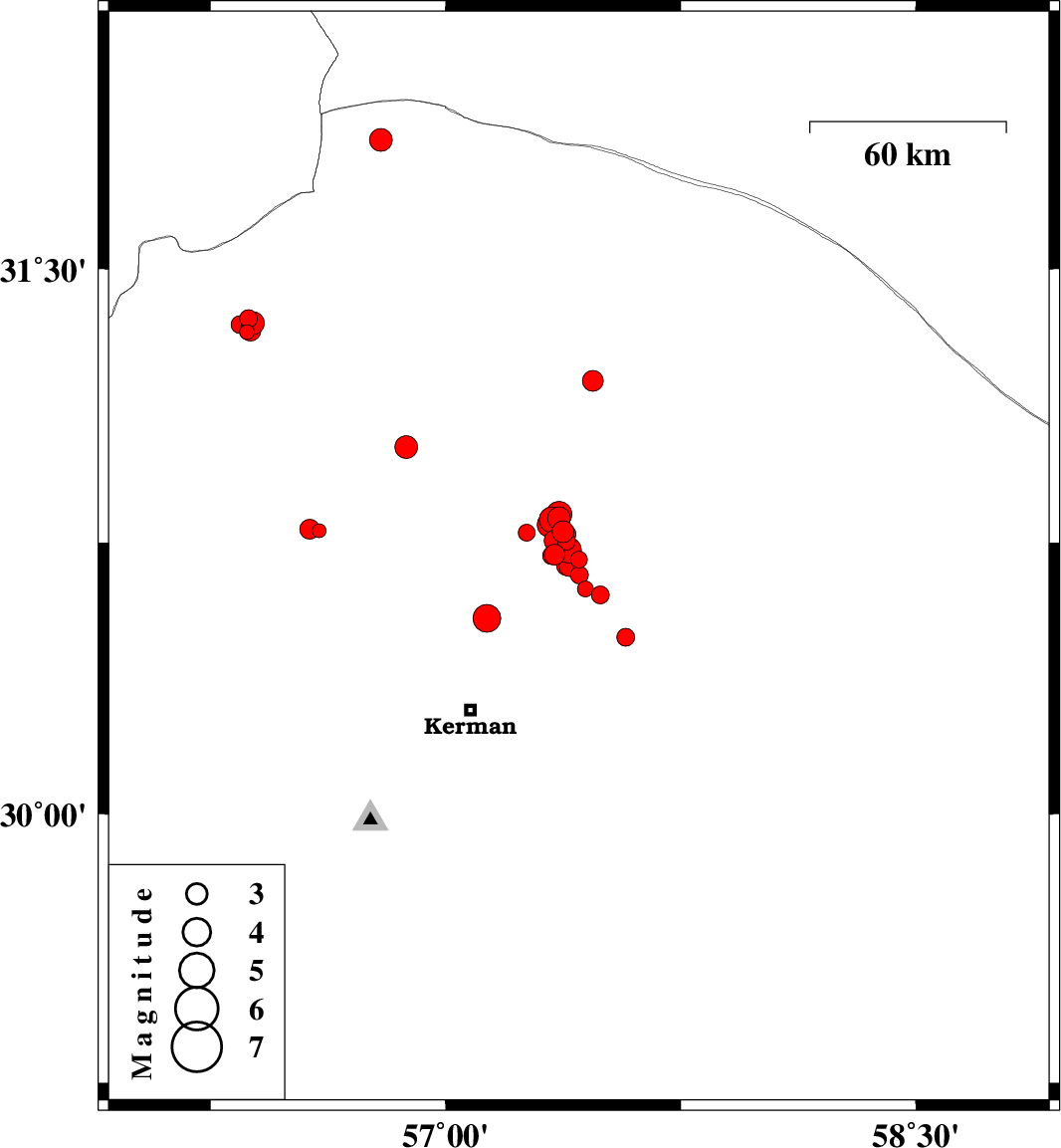 | 2018/06/28 | 19:52:40.4 | 00:22:40.4 | 30.685 | 57.395 | 14 | ML2.9 | Kerman Province, 54 km North-East of Kerman | ||