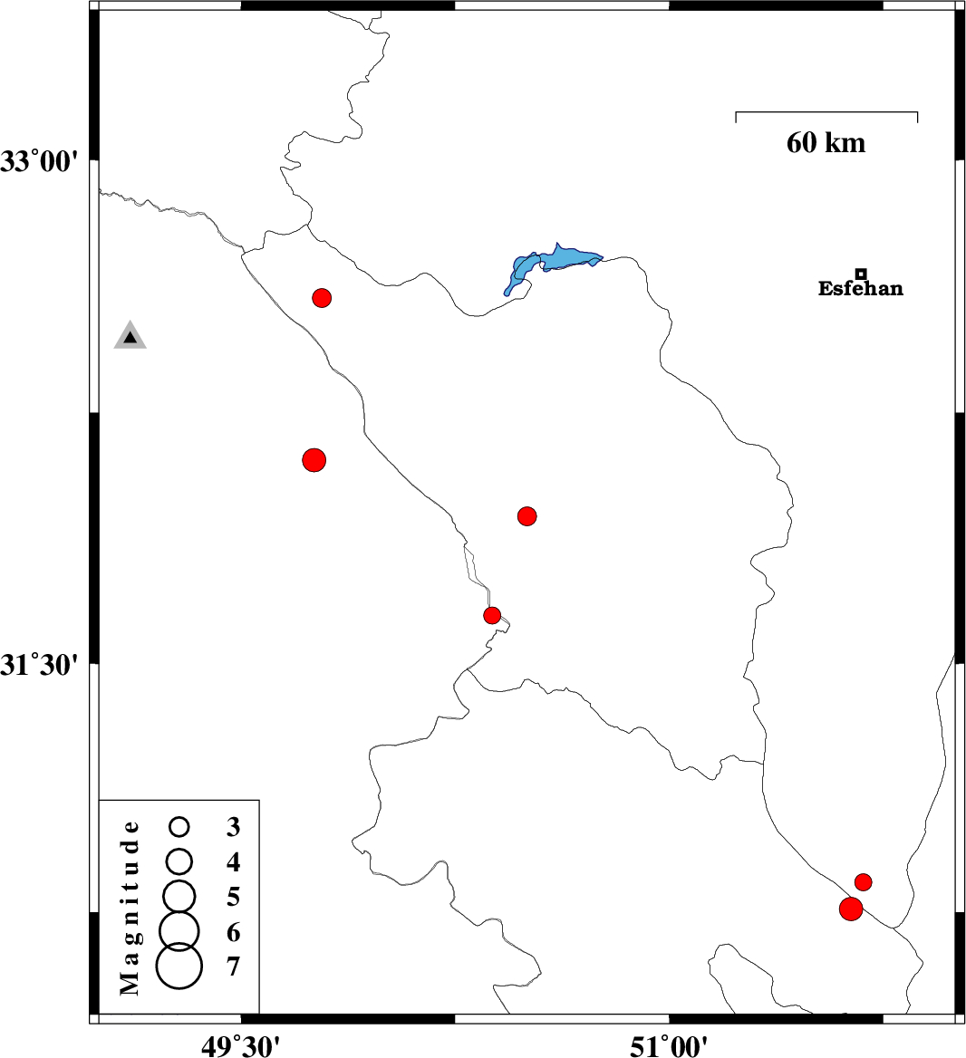 | 2018/07/07 | 14:34:35.4 | 19:04:35.4 | 32.591 | 49.783 | 15 | ML2.9 | Chaharmahal Bakhtiari Province, 35 km North-West of Chelgard | ||