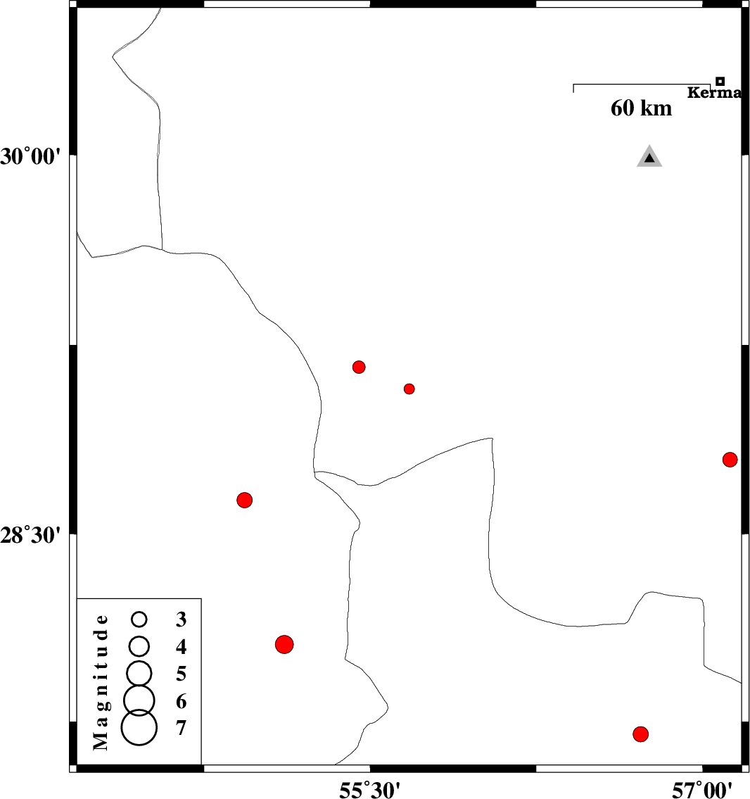 | 2018/07/09 | 08:24:36.1 | 12:54:36.1 | 28.796 | 57.124 | 14 | ML3 | Kerman Province, 62 km North-West of Jiroft |