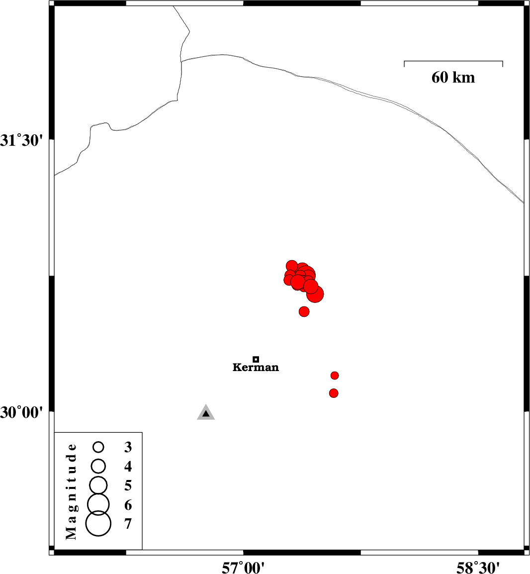 2017/12/01 03:35:00.5 07:05:00.5 30.75257.39916 ML:5.5 Kerman Province, 60 km North-East of Kerman