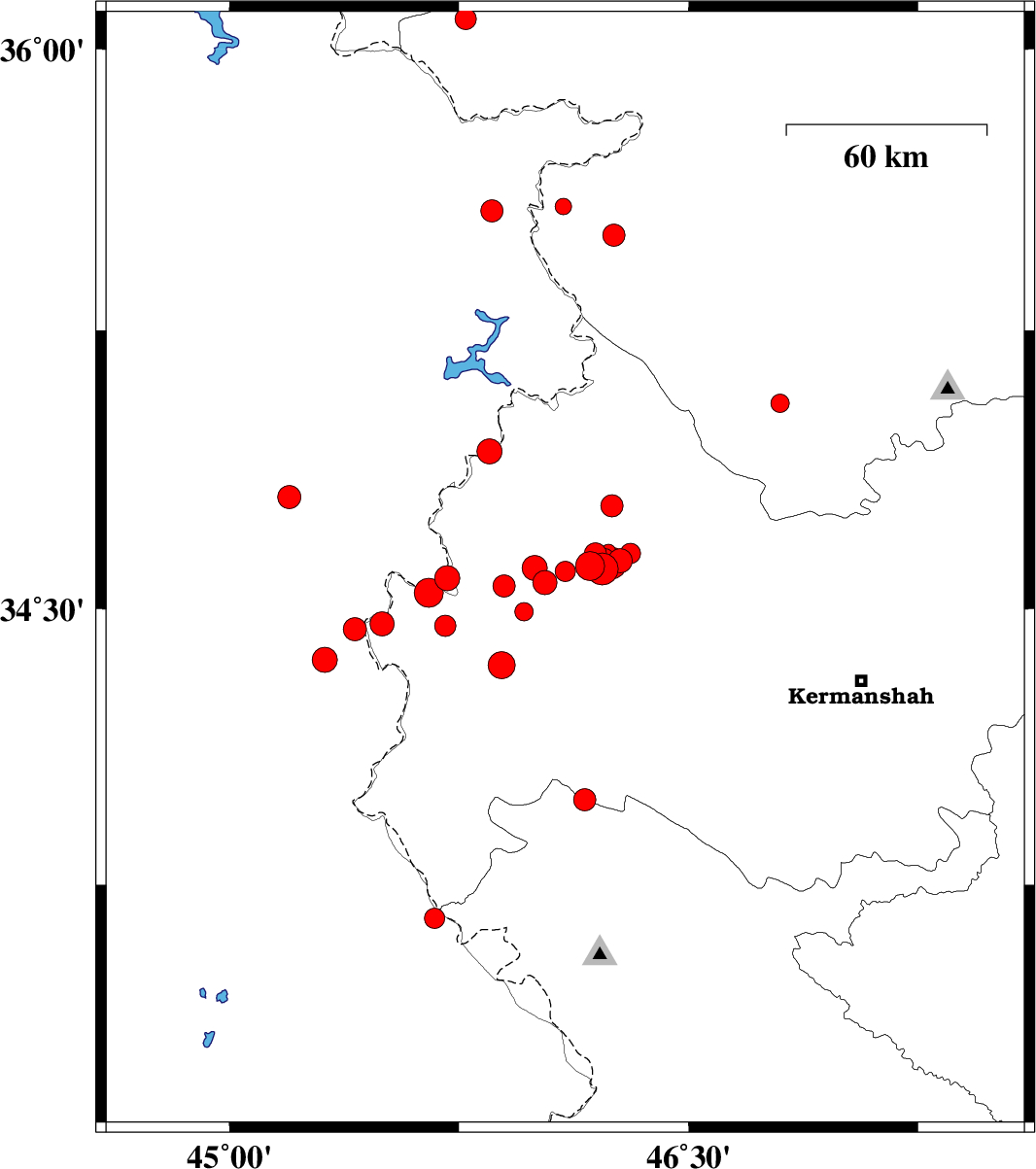 | 2018/07/15 | 07:11:01.0 | 11:41:01.0 | 34.608 | 46.218 | 14 | ML4.6 | Kermanshah Province, 33 km South-West of Javanrud | ||