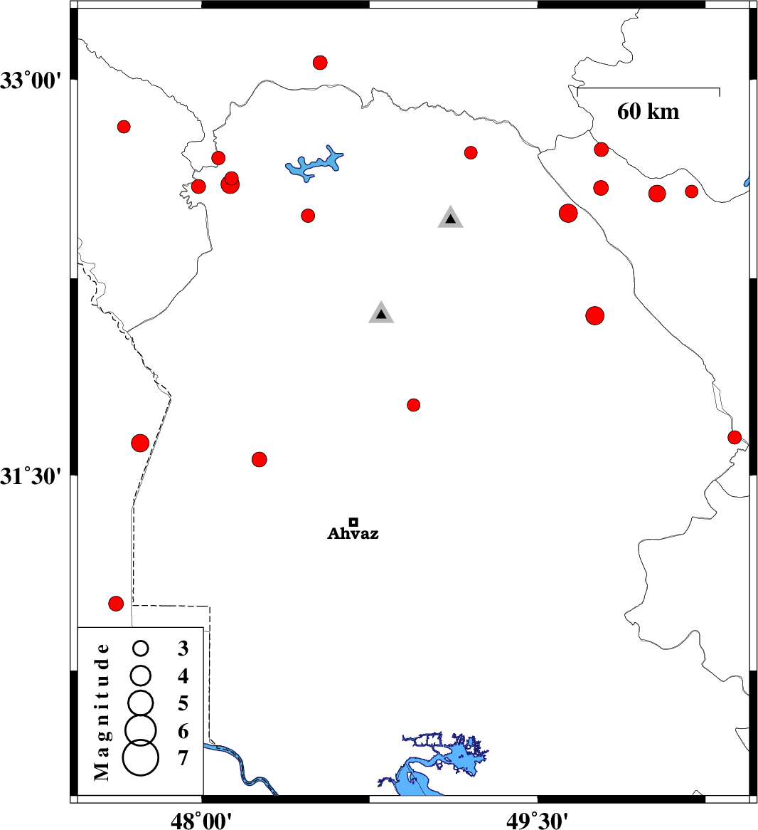 | 2018/07/12 | 15:52:01.7 | 20:22:01.7 | 33.063 | 48.529 | 14 | ML2.8 | Lorestan Province, 49 km South-East of Khorramabad | ||