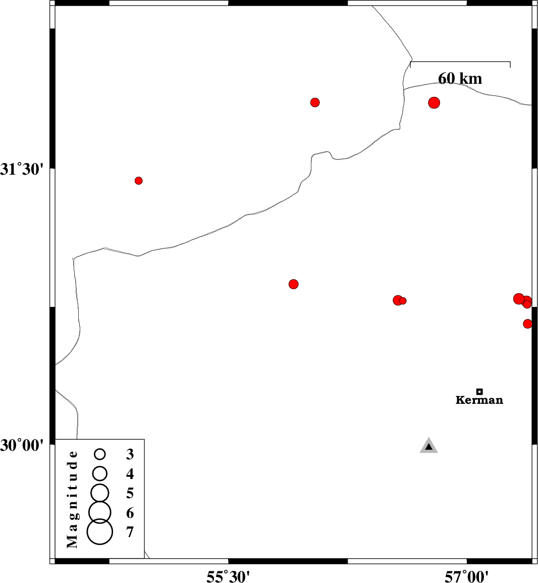 | 2018/07/15 | 10:59:24.7 | 15:29:24.7 | 30.658 | 57.382 | 15 | ML2.6 | Kerman Province, 50 km North-East of Kerman | ||