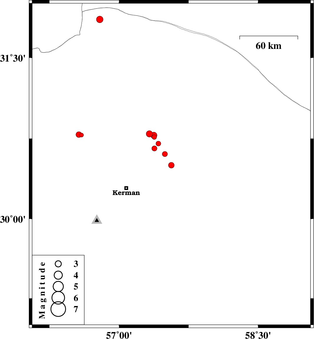 | 2018/07/10 | 09:21:01.9 | 13:51:01.9 | 30.78 | 57.375 | 15 | ML3.1 | Kerman Province, 62 km North-East of Kerman | ||