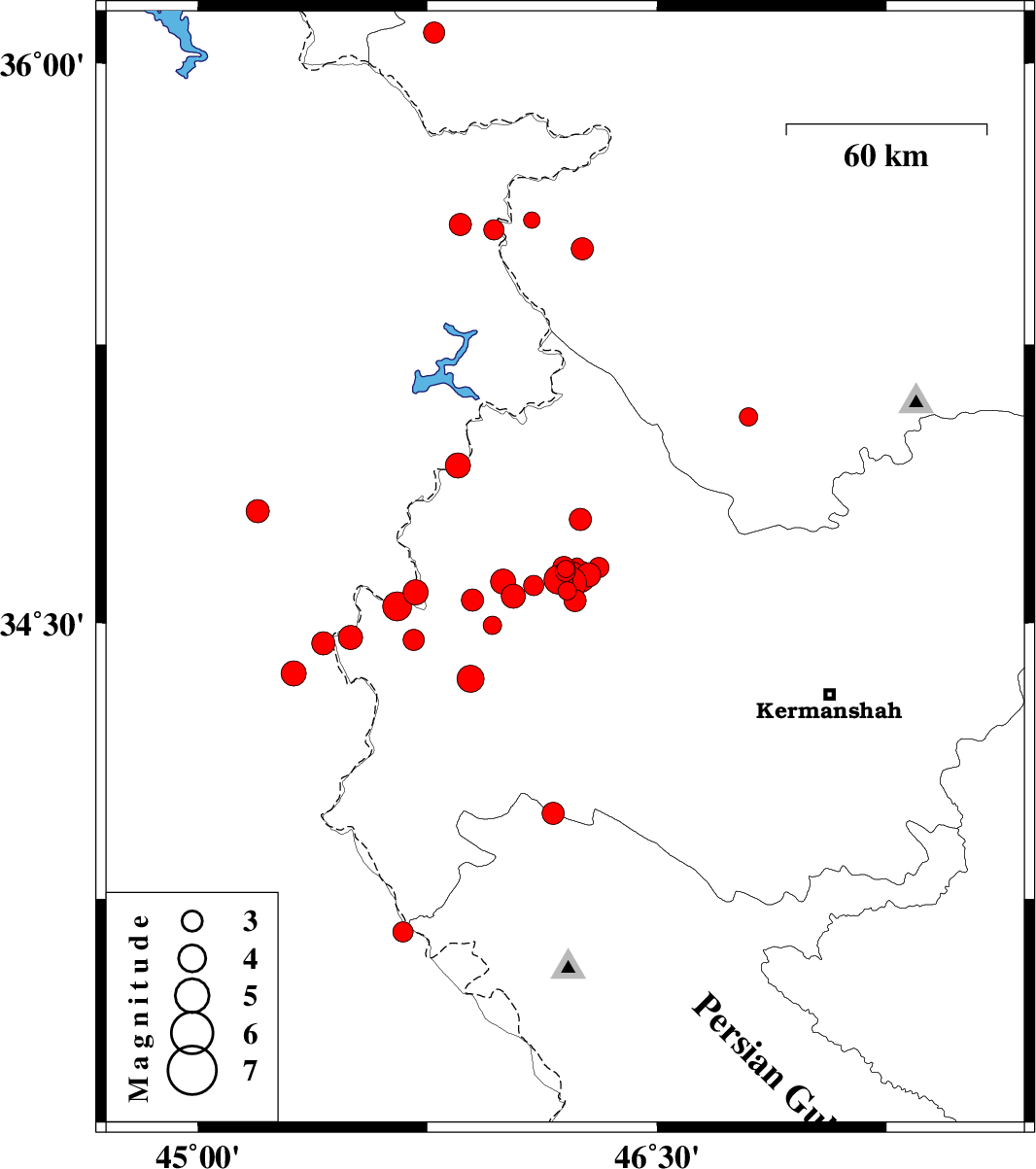 | 2018/06/30 | 06:08:07.6 | 10:38:07.6 | 34.611 | 45.997 | 15 | ML3.7 | Kermanshah Province, 19 km North-East of Sar-e pol-e zahab | ||