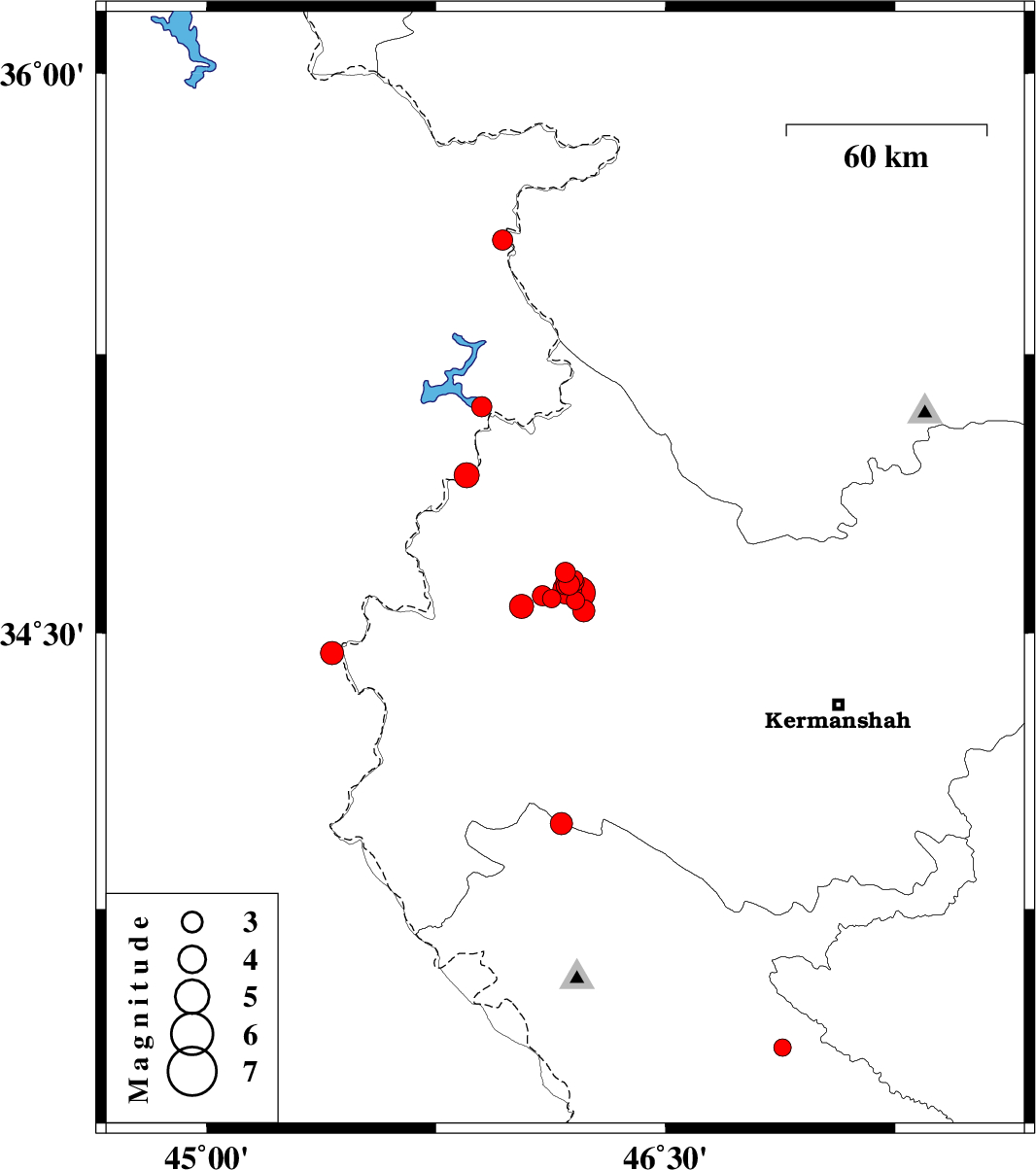 | 2018/07/15 | 07:11:01.0 | 11:41:01.0 | 34.608 | 46.218 | 14 | ML4.6 | Kermanshah Province, 33 km South-West of Javanrud | ||