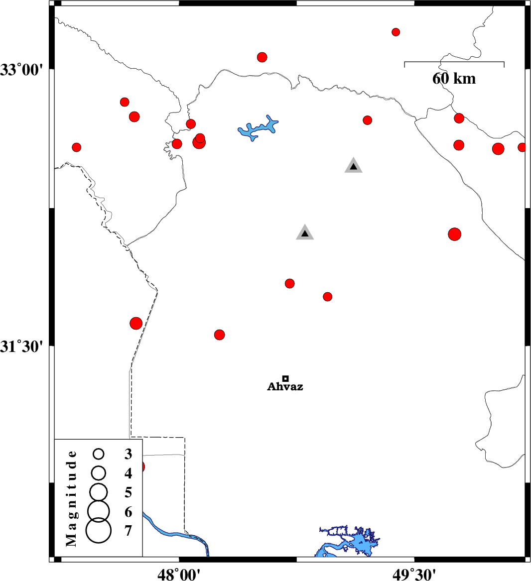 | 2018/07/20 | 22:05:56.2 | 02:35:56.2 | 31.84 | 48.705 | 15 | ML2.7 | Khoozestan Province, 26 km South-West of Shushtar | ||