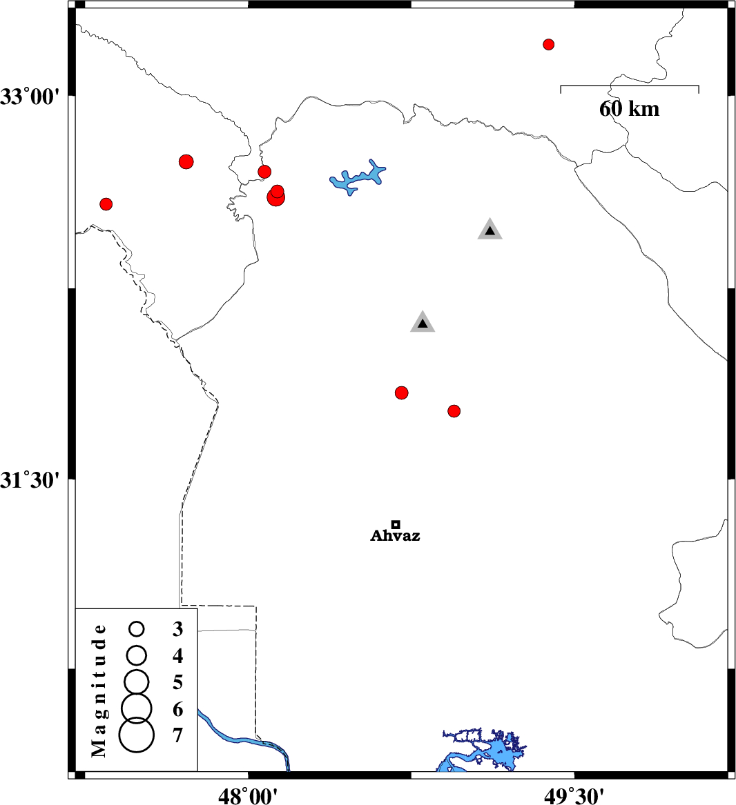 | 2018/07/16 | 02:27:36.0 | 06:57:36.0 | 31.768 | 48.946 | 15 | ML2.5 | Khoozestan Province, 32 km South of Shushtar | ||