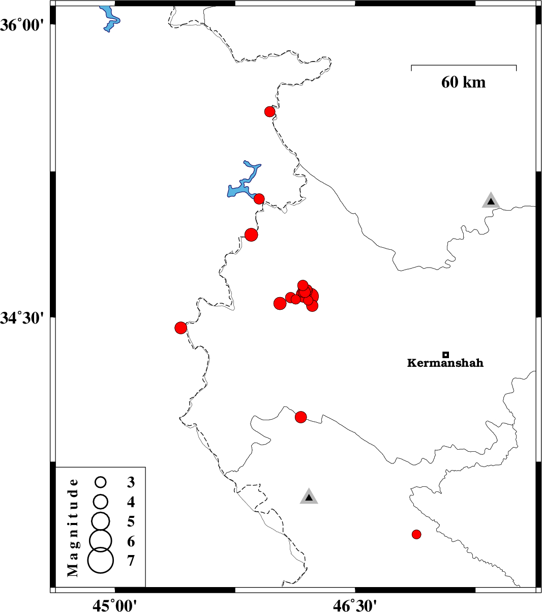 | 2018/07/15 | 07:11:01.0 | 11:41:01.0 | 34.608 | 46.218 | 14 | ML4.6 | Kermanshah Province, 33 km South-West of Javanrud | ||