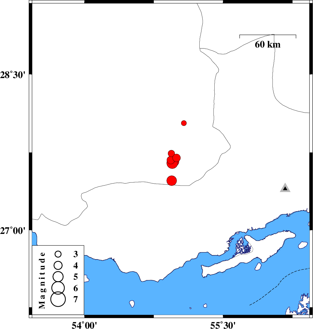 2018/07/21 | 18:24:13.9 | 22:54:13.9 | 28.033 | 55.076 | 6 | ML:2.6 | Fars Province, 82 km North-East of Lar |