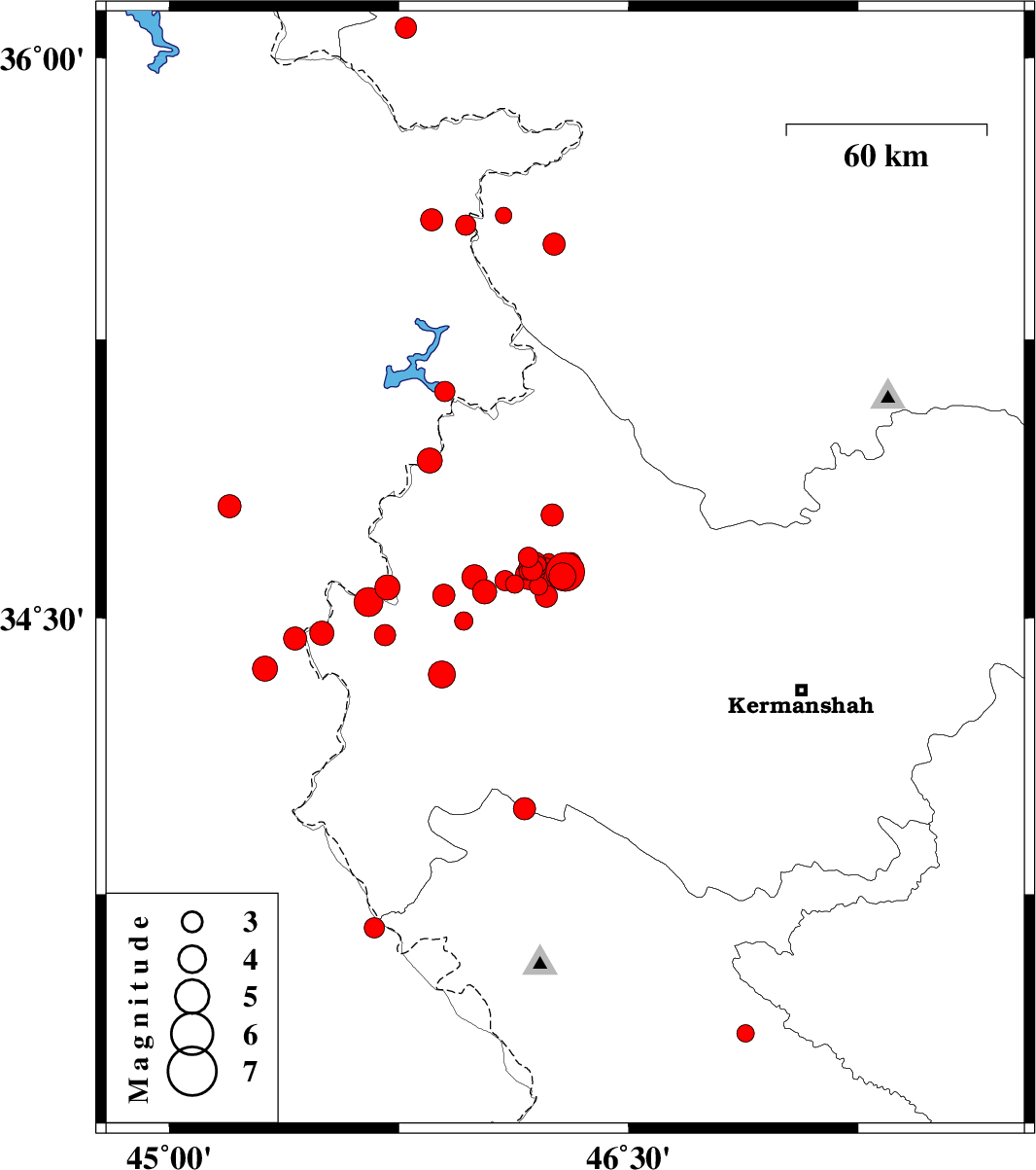 | 2018/07/15 | 07:11:01.0 | 11:41:01.0 | 34.608 | 46.218 | 14 | ML4.6 | Kermanshah Province, 33 km South-West of Javanrud | ||
