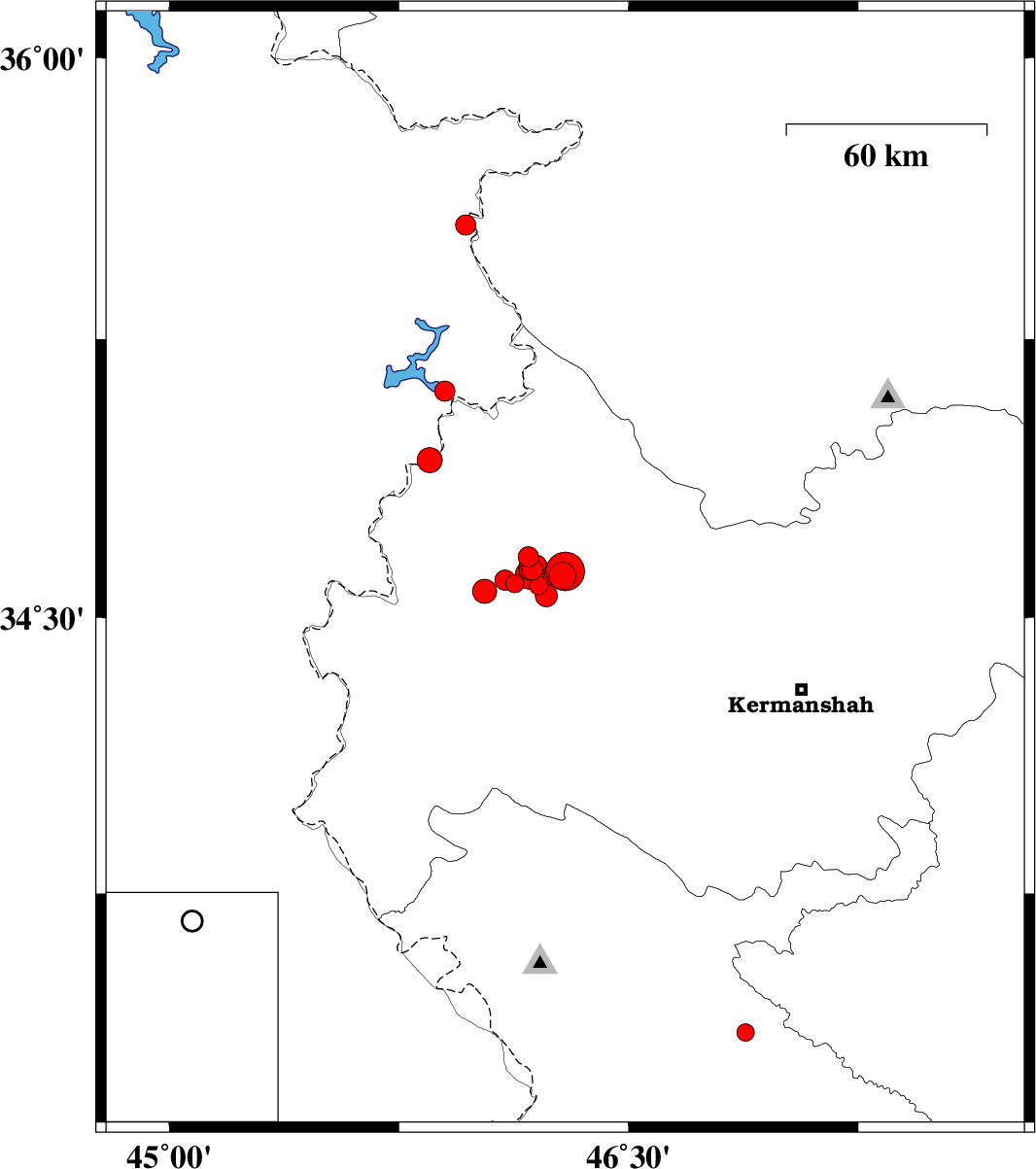 | 2018/07/16 | 02:19:01.5 | 06:49:01.5 | 34.601 | 46.097 | 14 | ML3 | Kermanshah Province, 24 km North-East of Sar-e pol-e zahab | ||