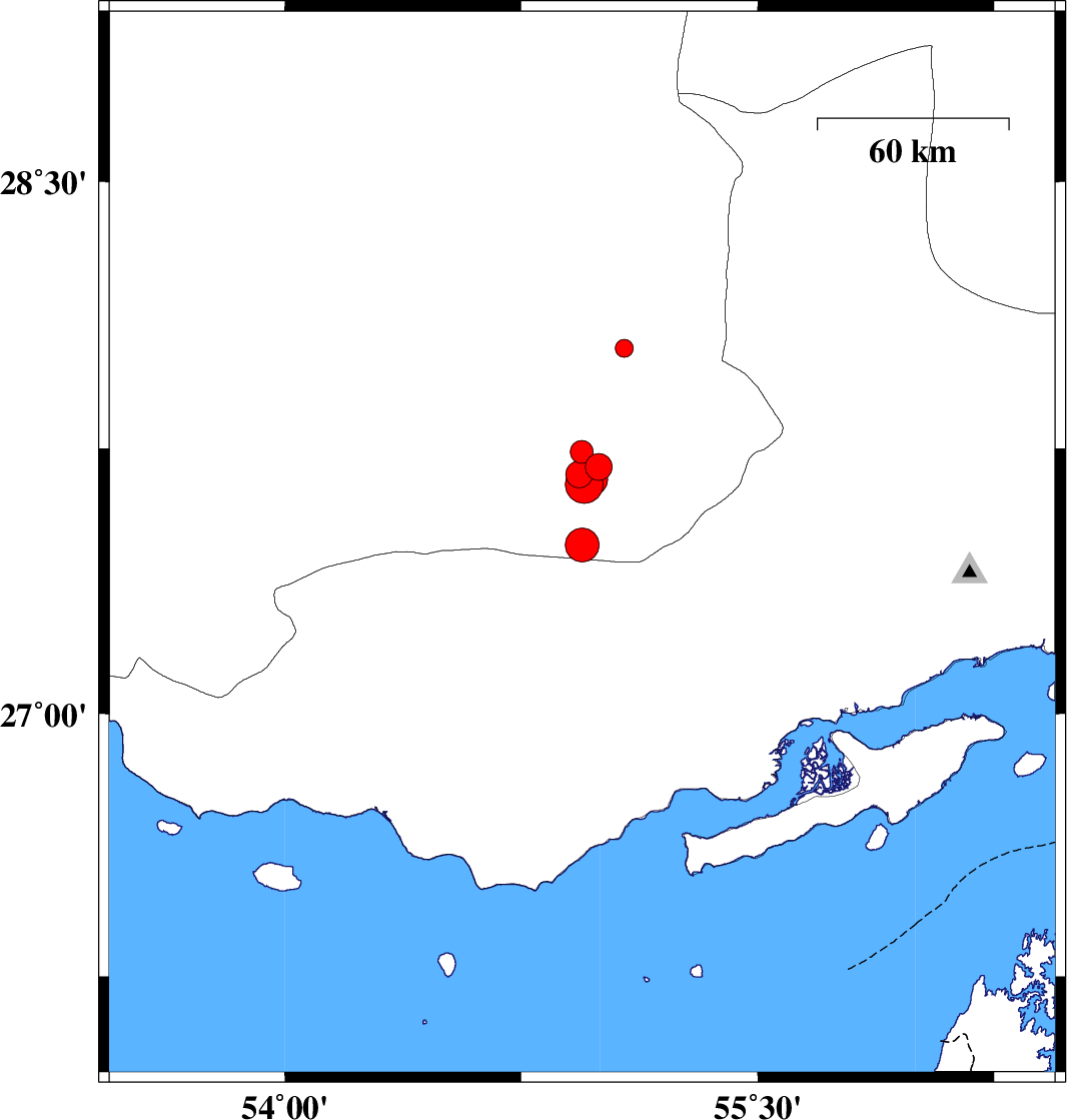 2018/07/22 | 17:23:01.2 | 21:53:01.2 | 27.698 | 54.996 | 17 | ML:3.8 | Fars Province, 65 km -East of Lar | ||