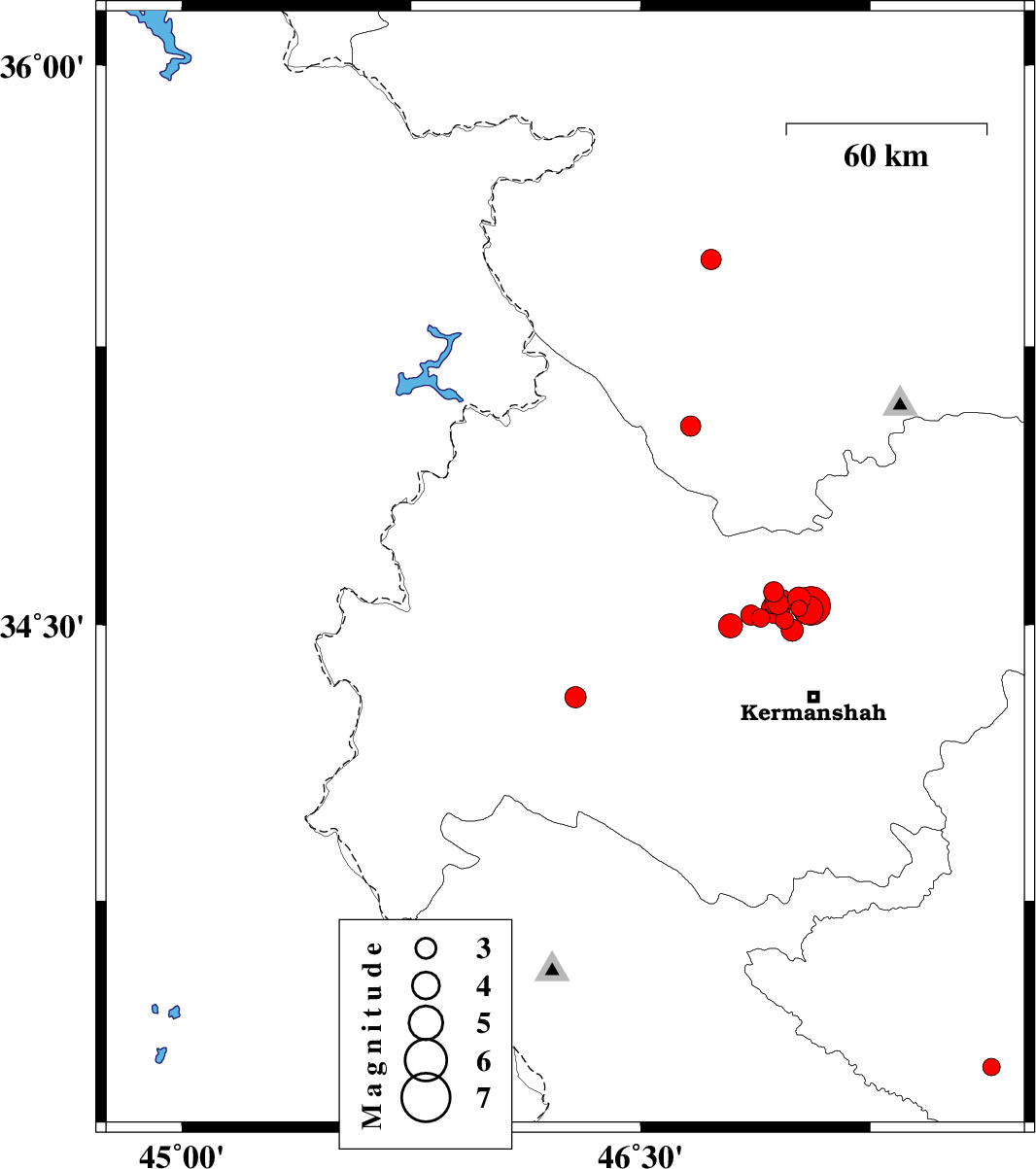 2018/07/19 | 09:21:20.5 | 13:51:20.5 | 34.636 | 46.177 | 14 | ML:3.3 | Kermanshah Province, 33 km North-East of Sar-e pol-e zahab | ||