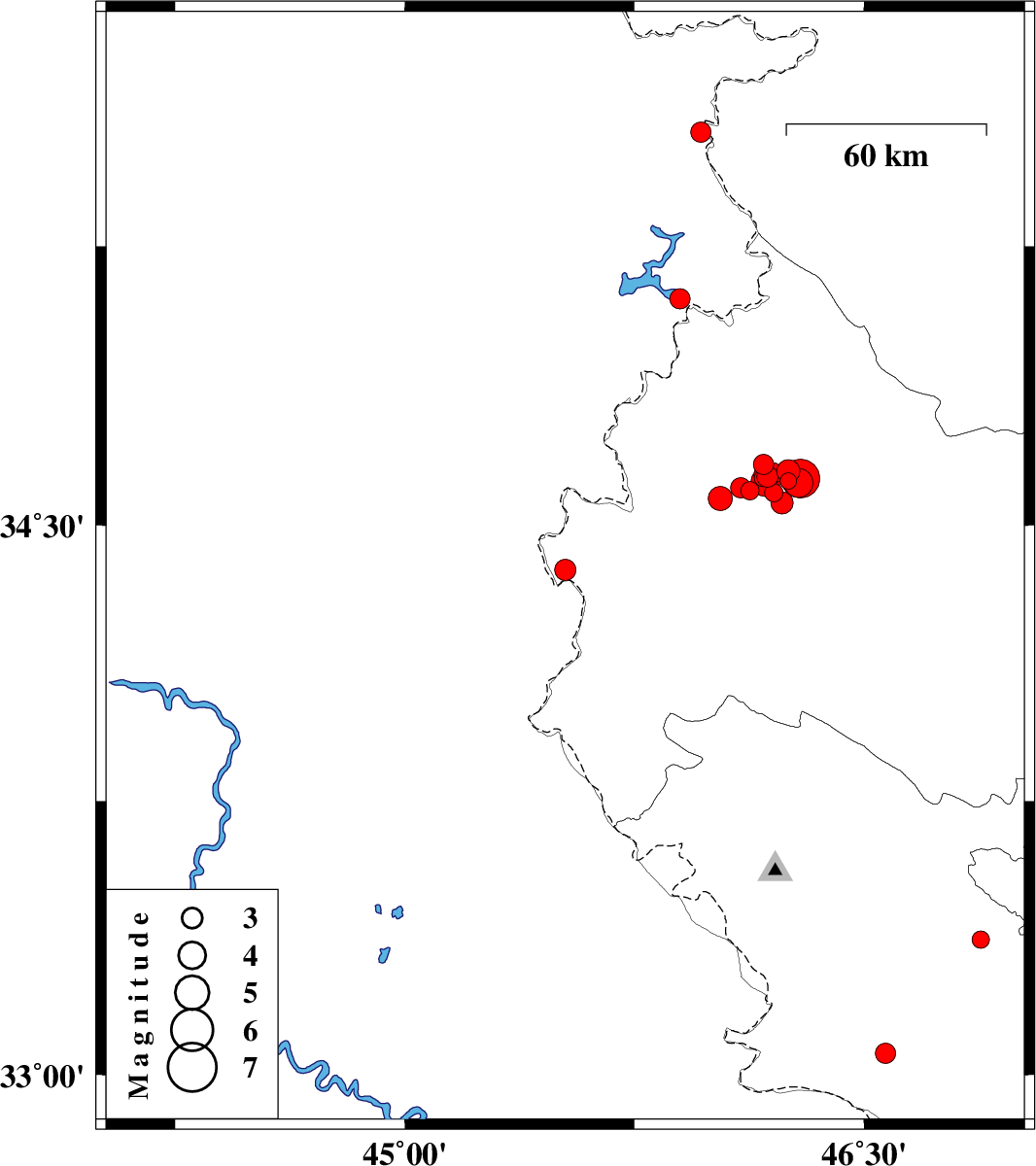 | 2018/07/16 | 02:19:01.5 | 06:49:01.5 | 34.601 | 46.097 | 14 | ML3 | Kermanshah Province, 24 km North-East of Sar-e pol-e zahab |