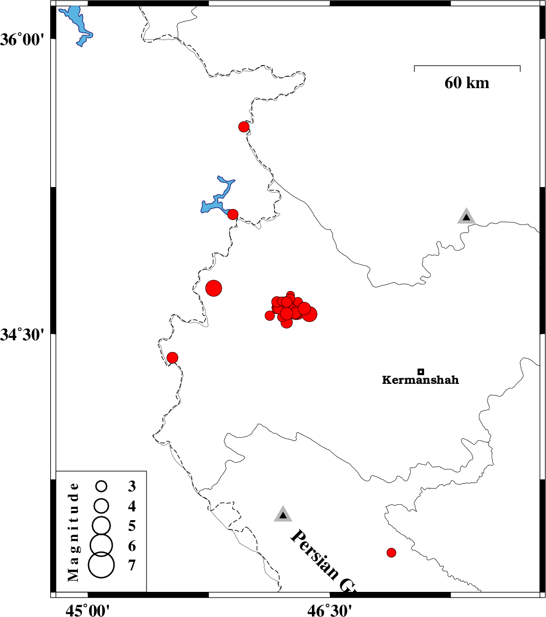 2018/07/24 | 02:34:36.9 | 07:04:36.9 | 34.648 | 46.273 | 15 | ML:3.6 | Kermanshah Province, 26 km South-West of Javanrud | ||