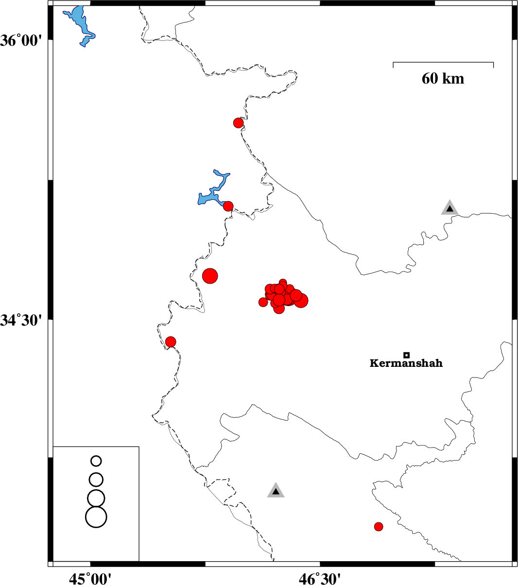 2018/07/24 | 02:34:36.9 | 07:04:36.9 | 34.648 | 46.273 | 15 | ML:3.6 | Kermanshah Province, 26 km South-West of Javanrud | ||