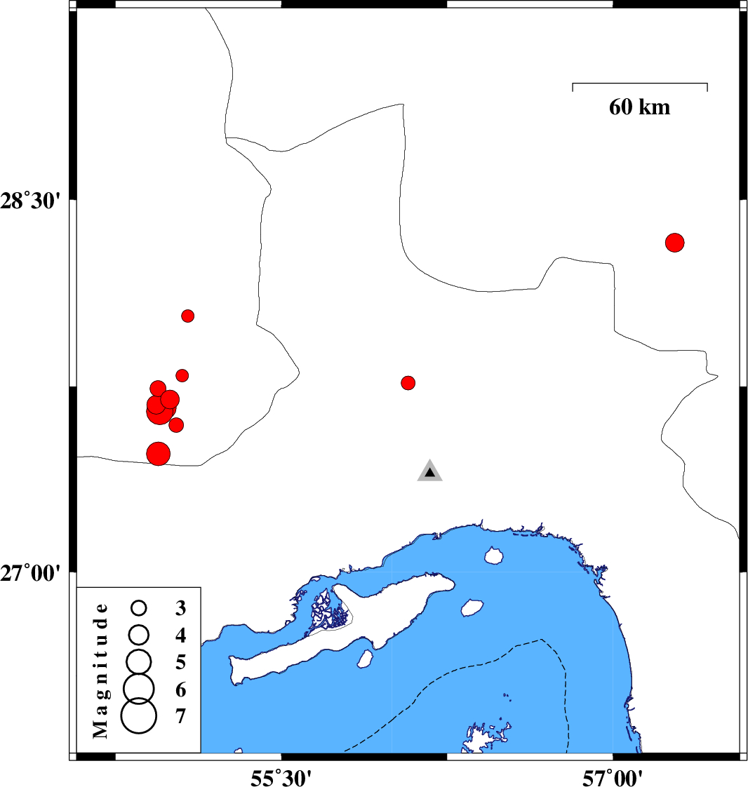 | 2018/07/22 | 05:07:04.5 | 09:37:04.5 | 27.649 | 54.95 | 16 | ML5.3 | Fars Province, 60 km -East of Lar | ||