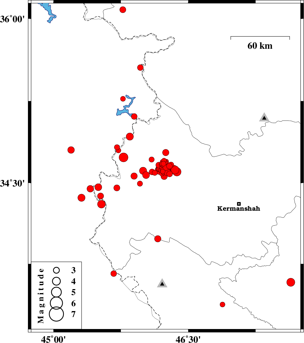 | 2018/07/16 | 02:19:01.5 | 06:49:01.5 | 34.601 | 46.097 | 14 | ML3 | Kermanshah Province, 24 km North-East of Sar-e pol-e zahab | ||