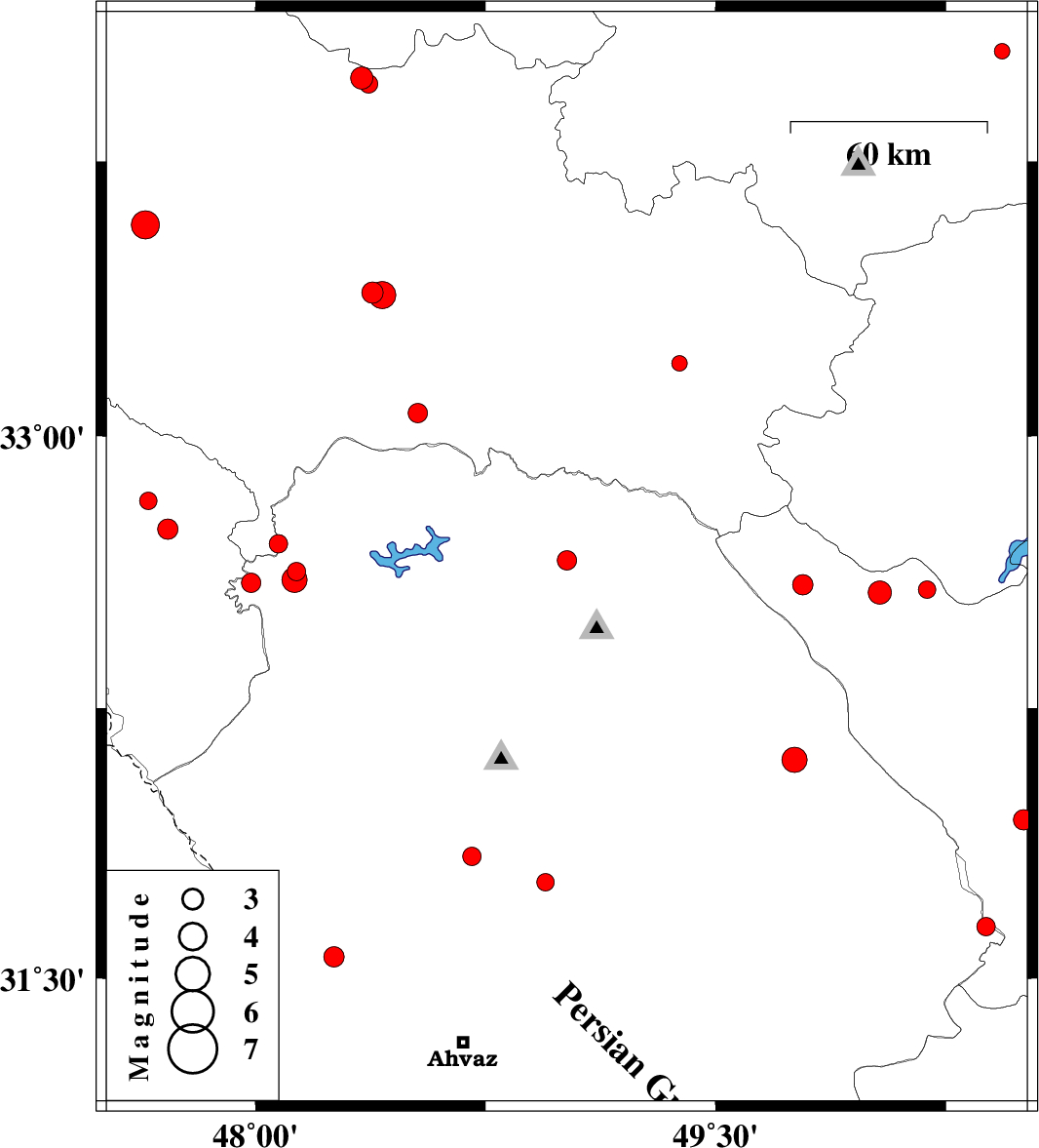 | 2018/07/16 | 02:27:36.0 | 06:57:36.0 | 31.768 | 48.946 | 15 | ML2.5 | Khoozestan Province, 32 km South of Shushtar | ||