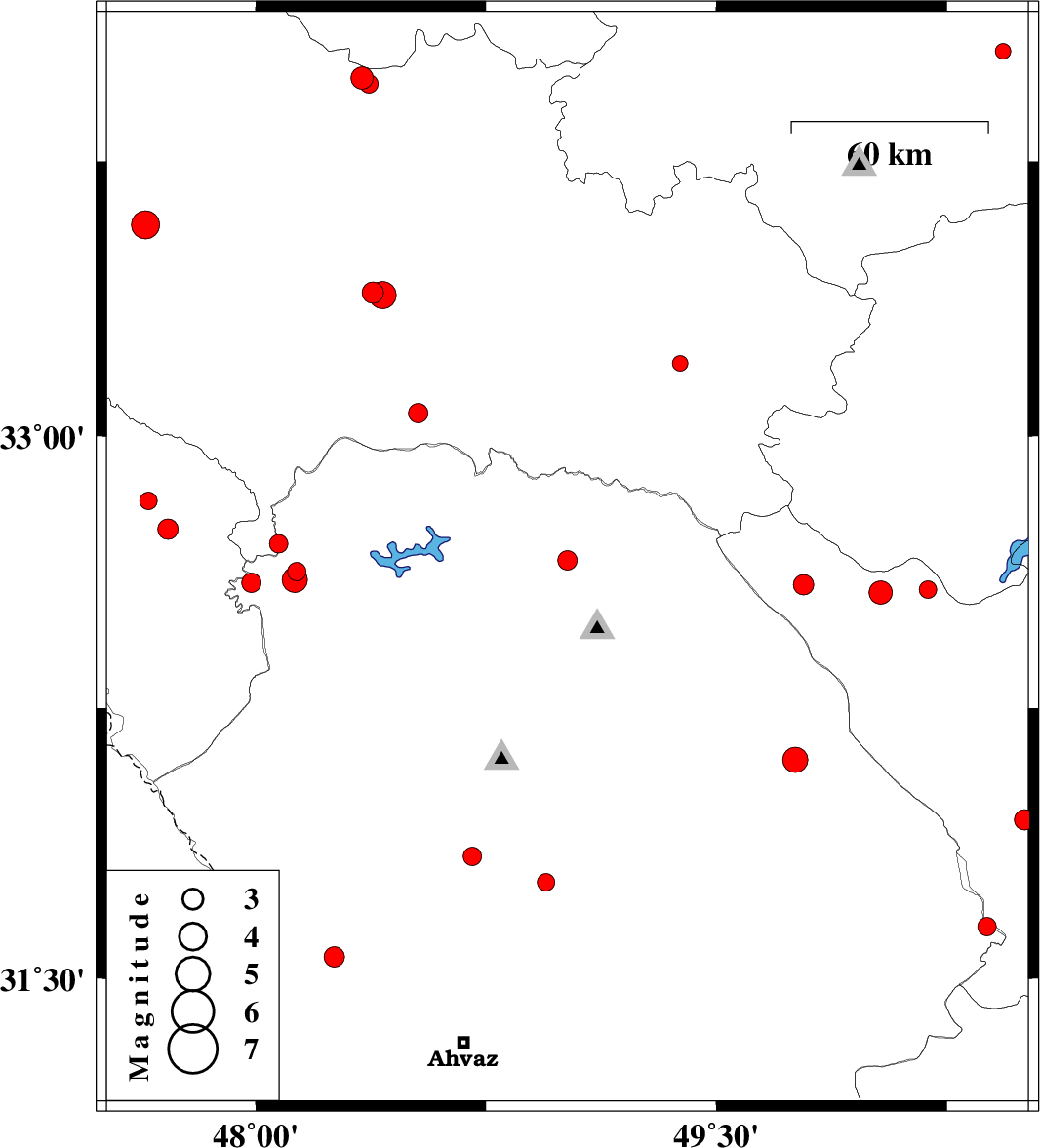 | 2018/07/12 | 15:52:01.7 | 20:22:01.7 | 33.063 | 48.529 | 14 | ML2.8 | Lorestan Province, 49 km South-East of Khorramabad | ||