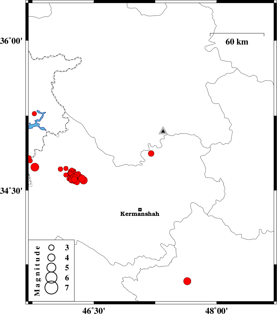 | 2018/07/22 | 10:07:25.9 | 14:37:25.9 | 34.625 | 46.293 | 6 | ML5.6 | Kermanshah Province, 27 km South-West of Javanrud |