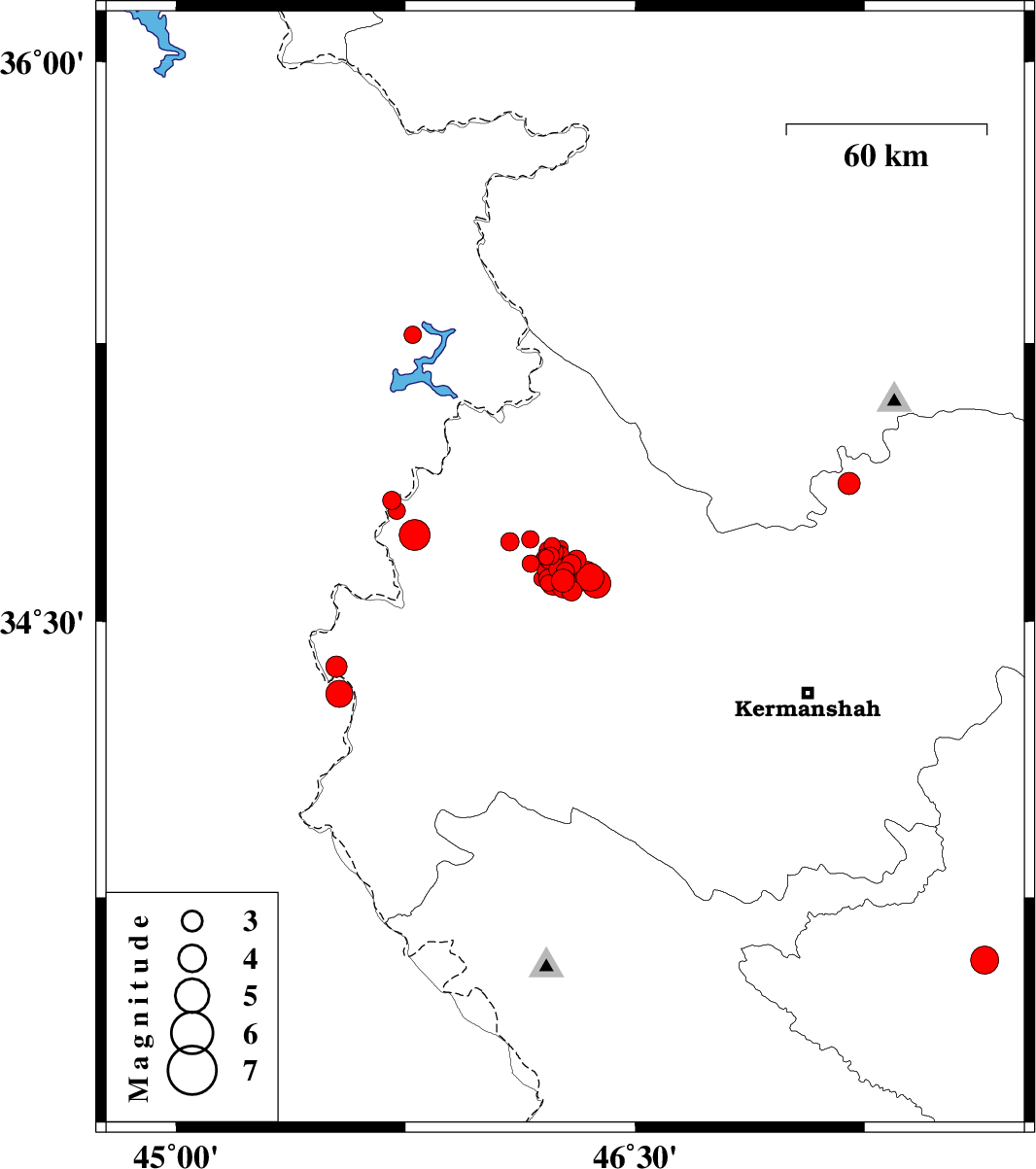 | 2018/07/27 | 04:00:32.9 | 08:30:32.9 | 34.596 | 46.268 | 6 | ML3.5 | Kermanshah Province, 31 km South-West of Javanrud | ||