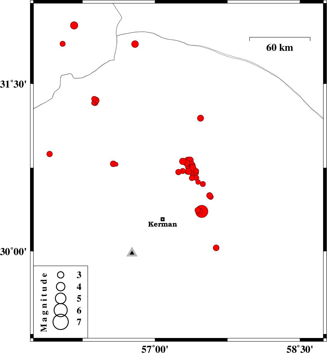 | 2018/06/28 | 19:52:40.4 | 00:22:40.4 | 30.685 | 57.395 | 14 | ML2.9 | Kerman Province, 54 km North-East of Kerman | ||