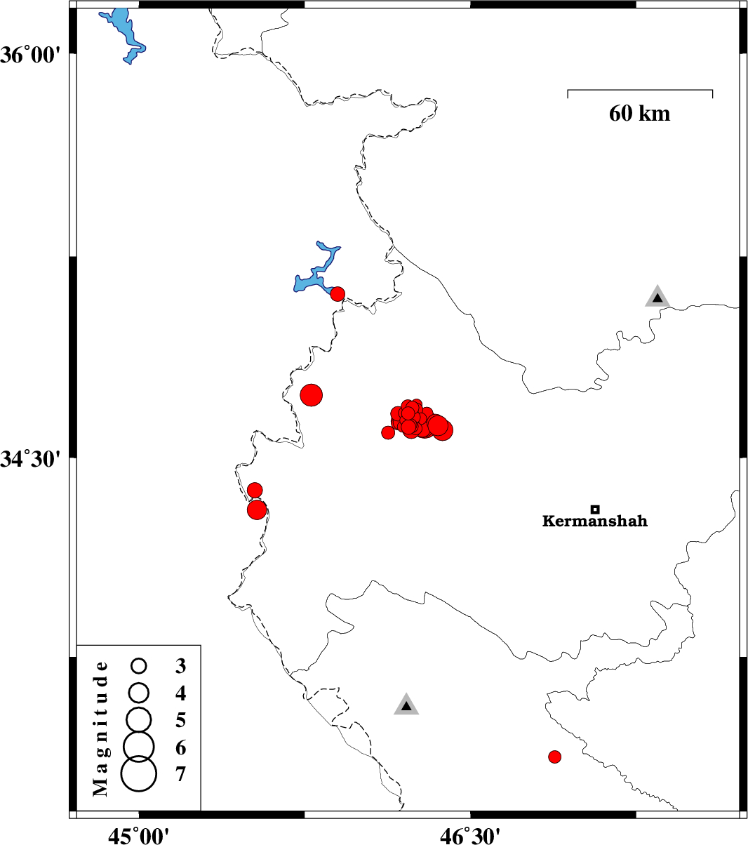 | 2018/07/22 | 10:07:25.9 | 14:37:25.9 | 34.625 | 46.293 | 6 | ML5.6 | Kermanshah Province, 27 km South-West of Javanrud | ||