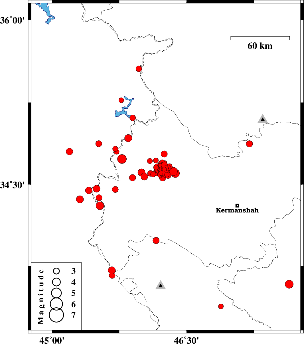 | 2018/07/16 | 02:19:01.5 | 06:49:01.5 | 34.601 | 46.097 | 14 | ML3 | Kermanshah Province, 24 km North-East of Sar-e pol-e zahab | ||