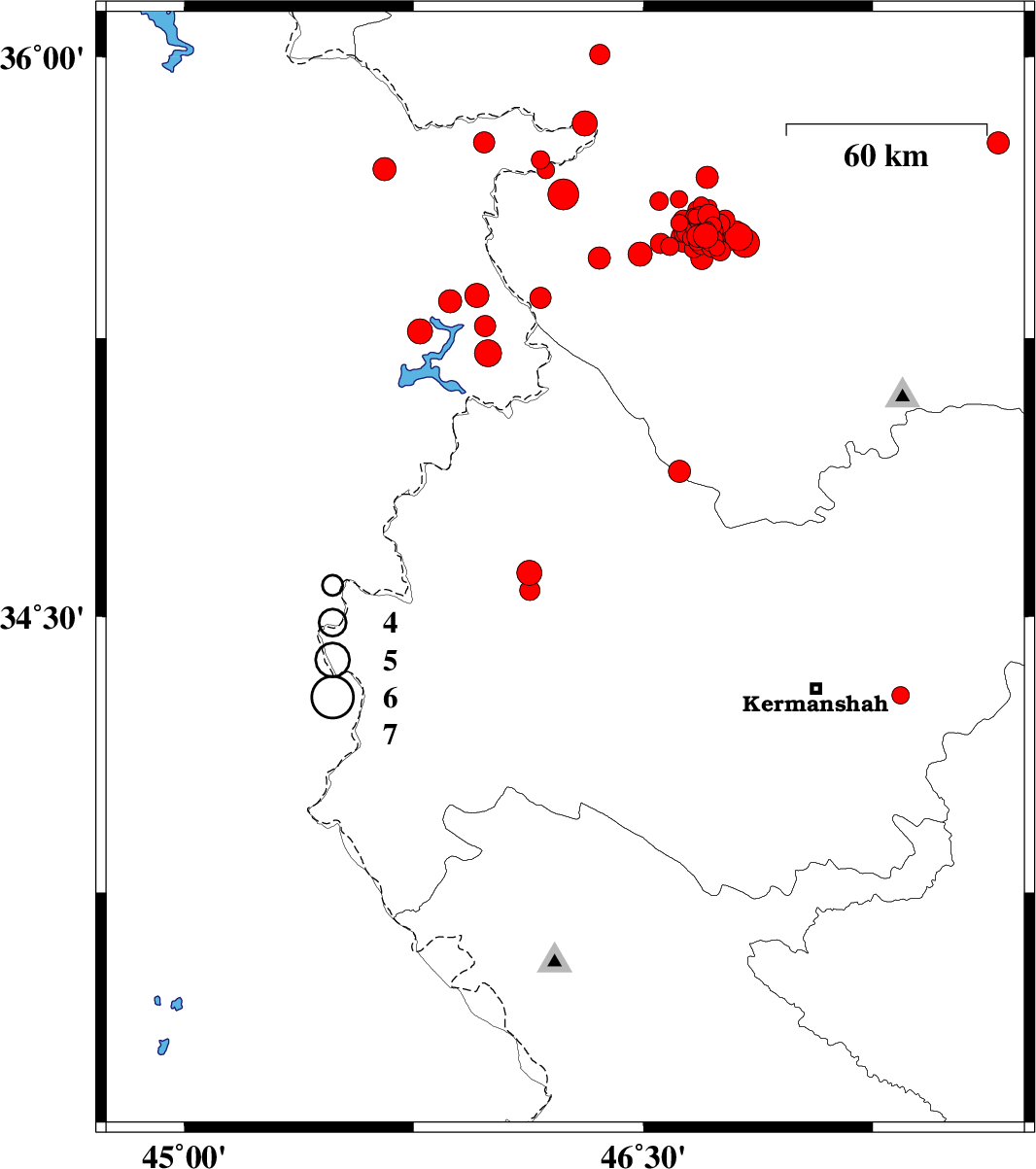 2018/07/30 | 03:02:57.7 | 07:32:57.7 | 34.677 | 46.254 | 6 | ML:3.2 | Kermanshah Province, 25 km South-West of Javanrud | ||