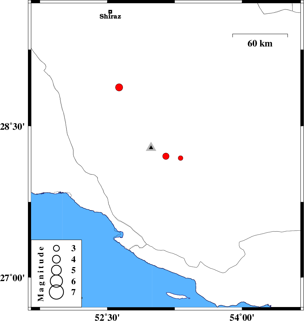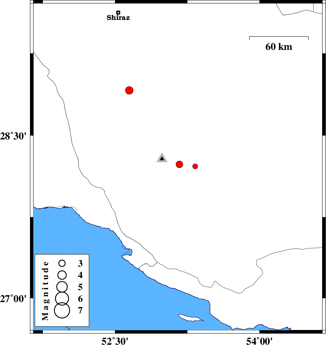 | 2018/07/12 | 07:32:52.2 | 12:02:52.2 | 28.88 | 52.632 | 14 | ML3.7 | Fars Province, 7 km of Firuz Abad |