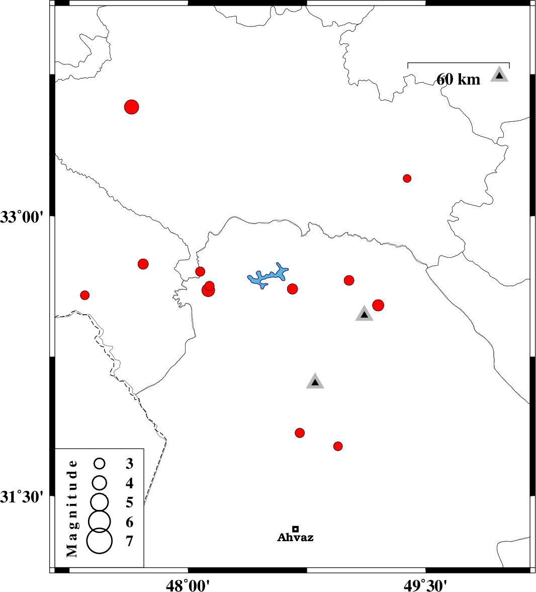 | 2018/08/12 | 03:28:01.9 | 07:58:01.9 | 32.612 | 48.658 | 17 | ML2.9 | Khoozestan Province, 33 km North-East of Andimeshk | ||