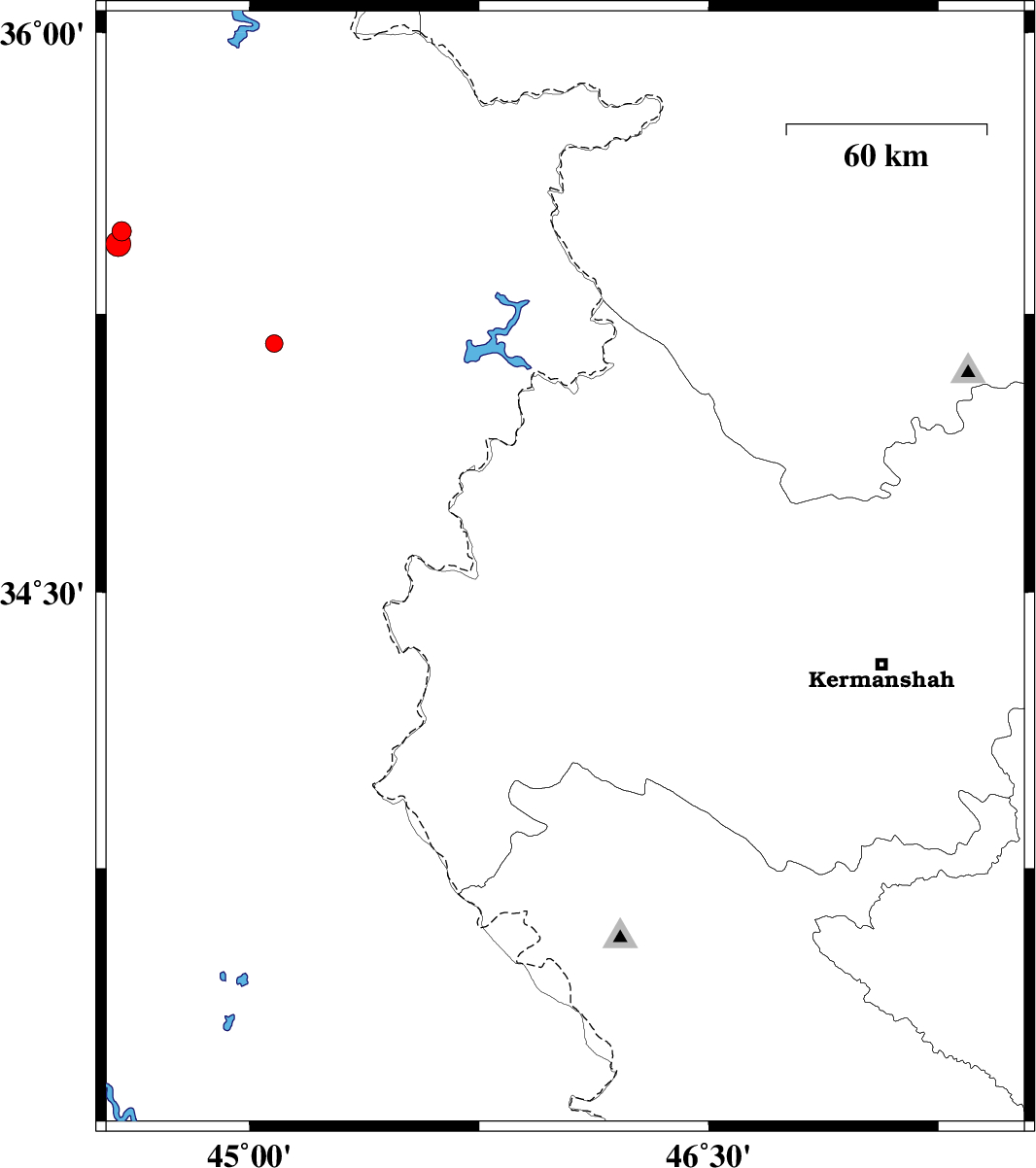 | 2018/08/12 | 16:56:26.4 | 21:26:26.4 | 34.558 | 46.031 | 14 | ML2.3 | Kermanshah Province, 17 km -East of Sar-e pol-e zahab | ||