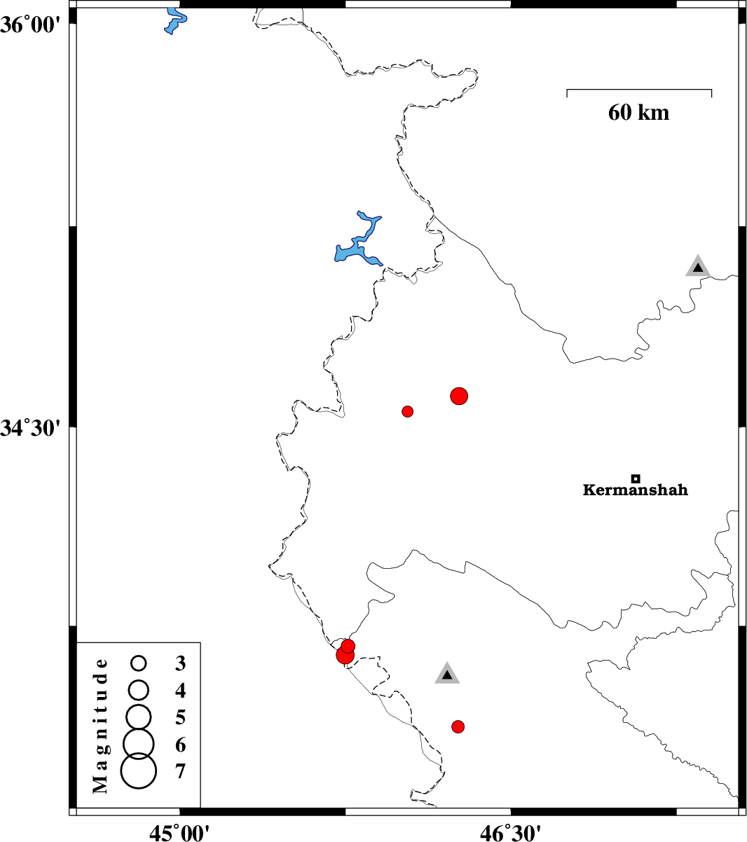 | 2018/08/08 | 13:11:42.9 | 17:41:42.9 | 34.616 | 46.264 | 15 | ML3.5 | Kermanshah Province, 29 km South-West of Javanrud |