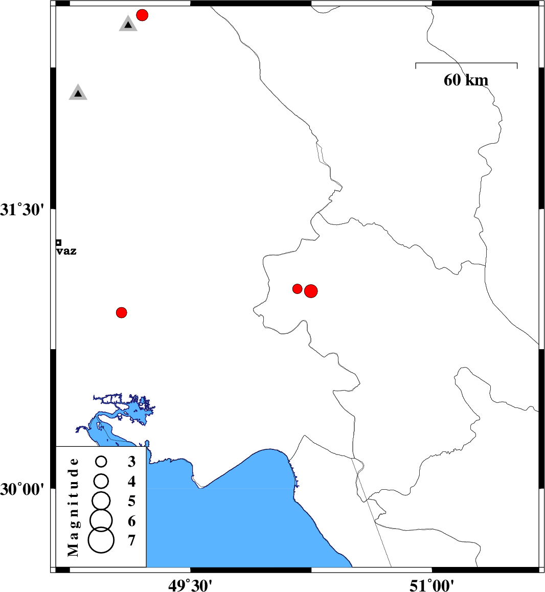 | 2018/08/13 | 14:02:37.4 | 18:32:37.4 | 30.946 | 49.071 | 15 | ML3 | Khoozestan Province, 45 km North-West of Bandar-e mahshahr | ||