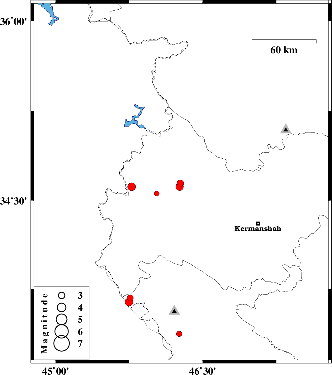 | 2018/08/08 | 13:11:42.9 | 17:41:42.9 | 34.616 | 46.264 | 15 | ML3.5 | Kermanshah Province, 29 km South-West of Javanrud |