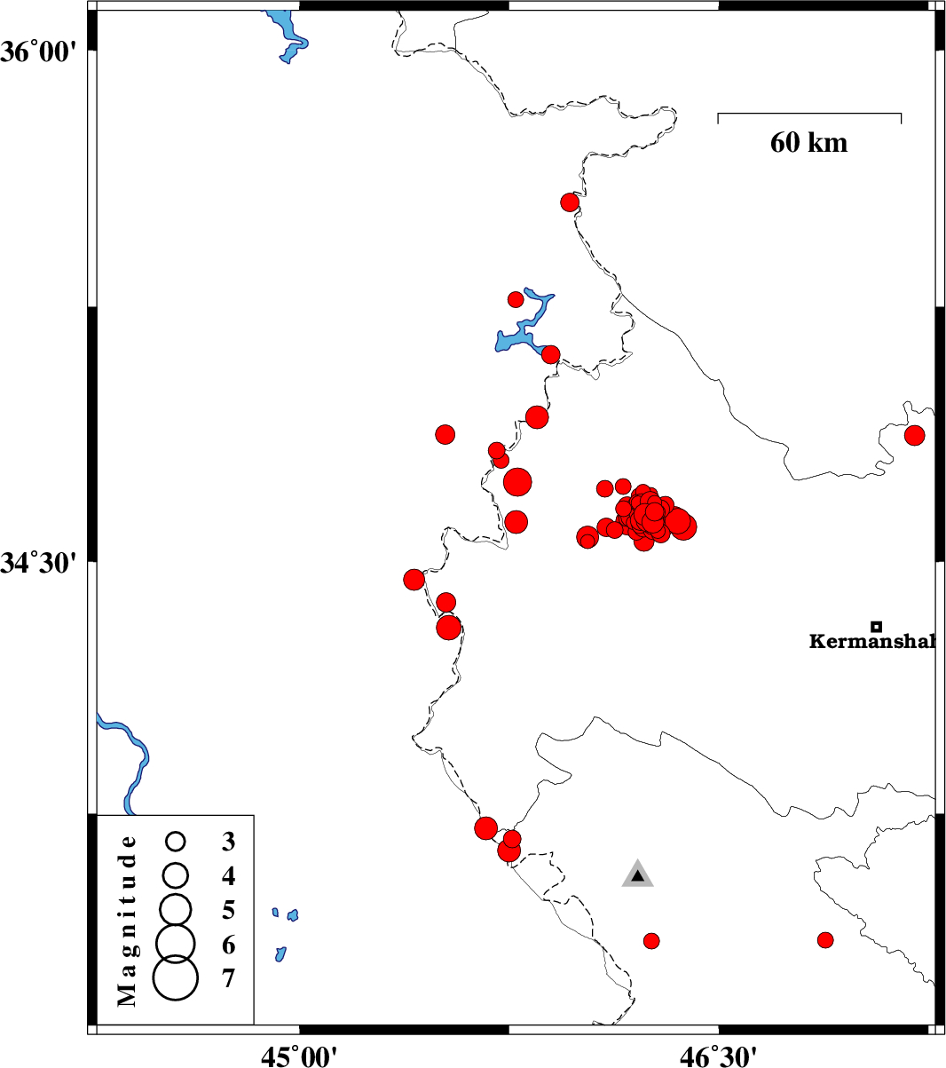 | 2018/07/17 | 18:26:59.3 | 22:56:59.3 | 34.587 | 46.206 | 14 | ML2.7 | Kermanshah Province, 32 km North-East of Sar-e pol-e zahab | ||