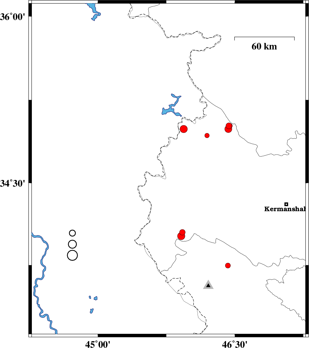 | 2018/08/12 | 16:56:26.4 | 21:26:26.4 | 34.558 | 46.031 | 14 | ML2.3 | Kermanshah Province, 17 km -East of Sar-e pol-e zahab | ||