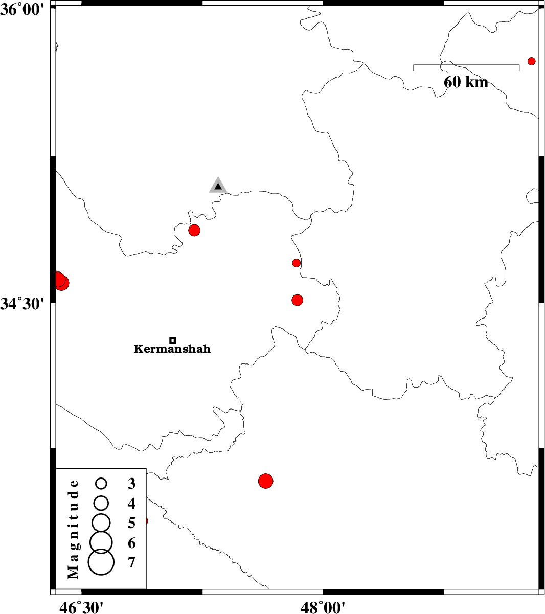 | 2018/07/16 | 01:45:36.2 | 06:15:36.2 | 34.704 | 47.833 | 14 | ML2.3 | Kermanshah Province, 25 km North-West of Kangavar | ||
