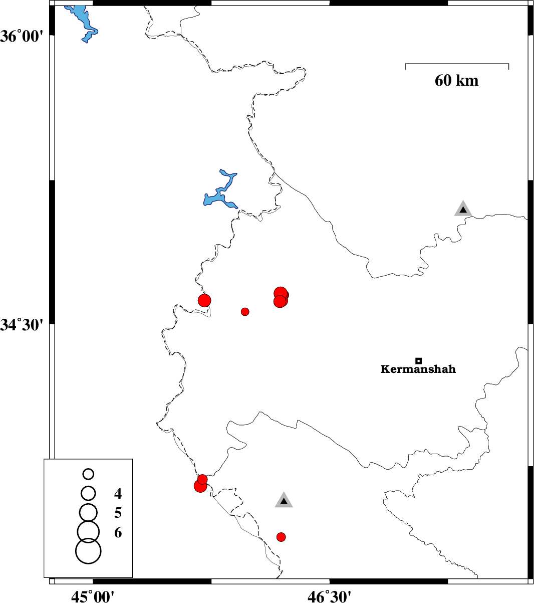 | 2018/08/08 | 13:11:42.9 | 17:41:42.9 | 34.616 | 46.264 | 15 | ML3.5 | Kermanshah Province, 29 km South-West of Javanrud |