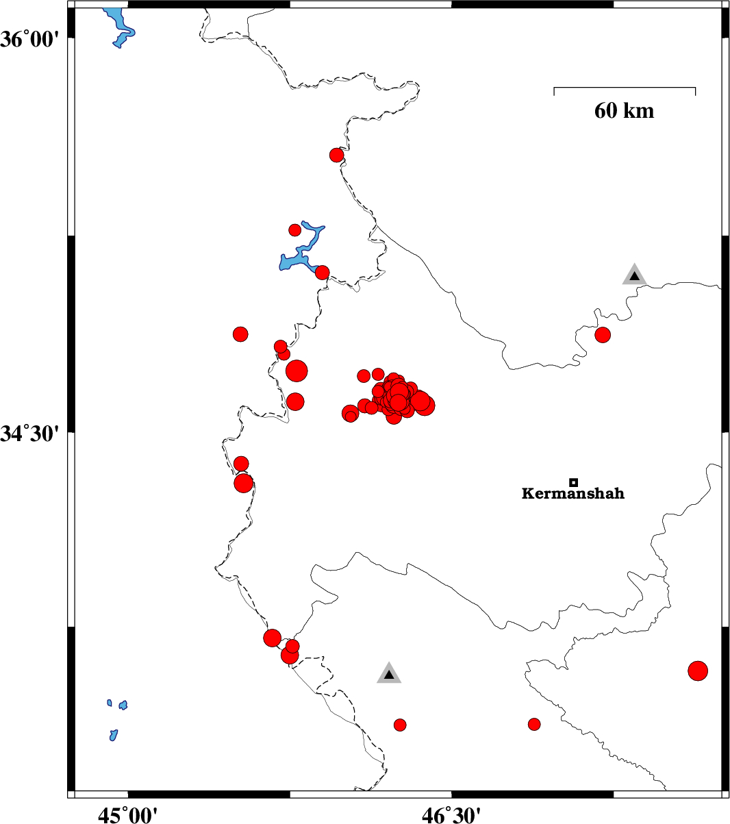 | 2018/08/12 | 16:56:26.4 | 21:26:26.4 | 34.558 | 46.031 | 14 | ML2.3 | Kermanshah Province, 17 km -East of Sar-e pol-e zahab | ||