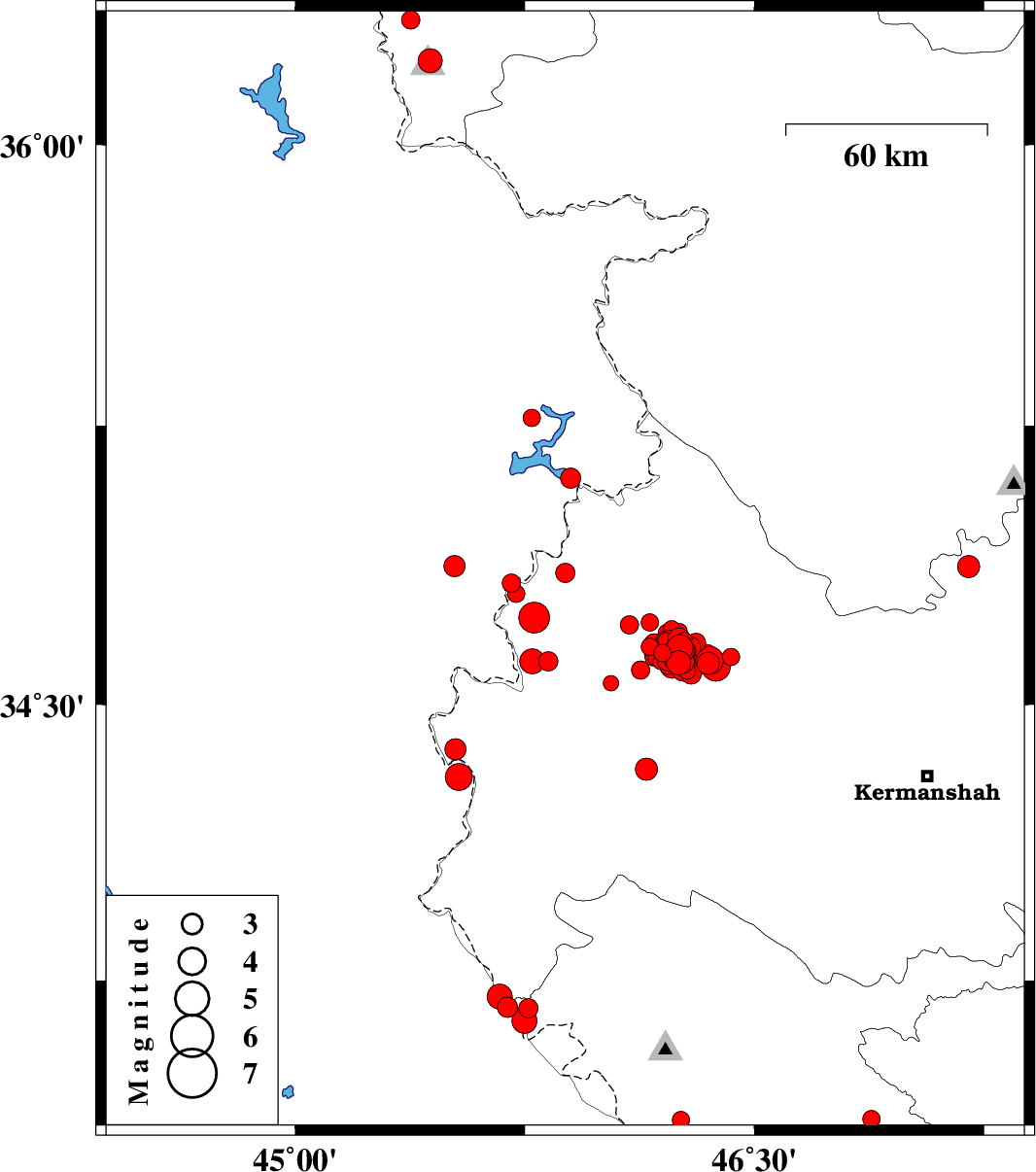 | 2018/07/27 | 04:00:32.9 | 08:30:32.9 | 34.596 | 46.268 | 6 | ML3.5 | Kermanshah Province, 31 km South-West of Javanrud | ||