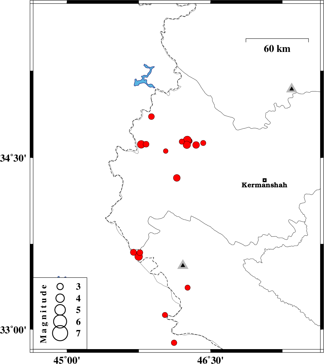 | 2018/08/12 | 16:56:26.4 | 21:26:26.4 | 34.558 | 46.031 | 14 | ML2.3 | Kermanshah Province, 17 km -East of Sar-e pol-e zahab | ||
