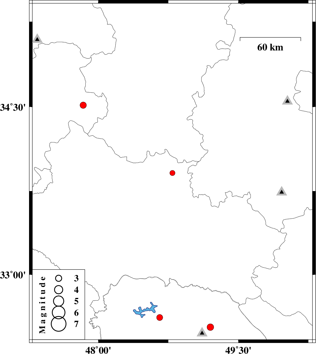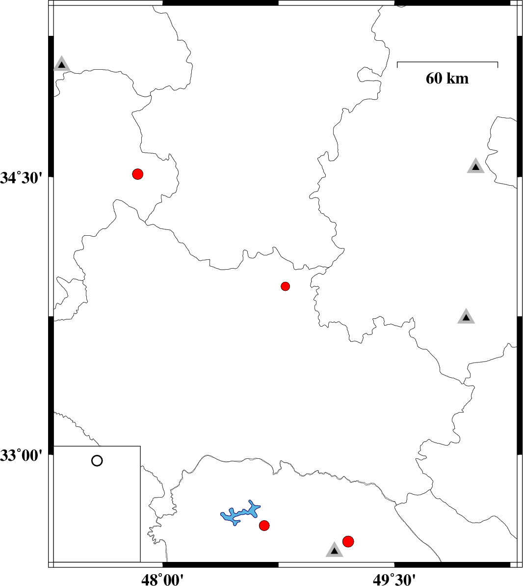 | 2018/08/12 | 03:28:01.9 | 07:58:01.9 | 32.612 | 48.658 | 17 | ML2.9 | Khoozestan Province, 33 km North-East of Andimeshk |