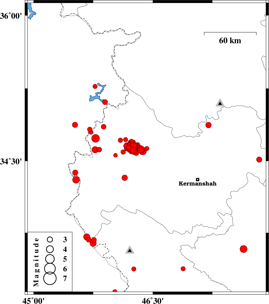 | 2018/07/26 | 07:42:07.5 | 12:12:07.5 | 34.687 | 46.238 | 6 | ML2.7 | Kermanshah Province, 25 km South-West of Javanrud | ||
